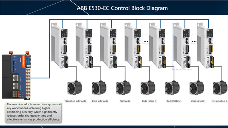 1) Aote smart equipment has professionally developed a front edge feeding control system solution on European servo drive product platform to integrate the features such as internal cam controller, main encoder information acquisition, automatic feedforward, skip feeding, and free zero reset mechanism. It has completed the control of the servo drive integrated machine, meeting the high precision and integration requirements and aiming to provide customers with products of high cost performance.