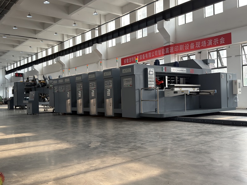 ● Automatic control system, merely an order of box information i.e. the axial and circumference data of all units is input in touch screen, the feeder, printer, slotter and die cutter will be set automatically, featuring accuracy and reliability to realize automation and enhance production efficiency.
