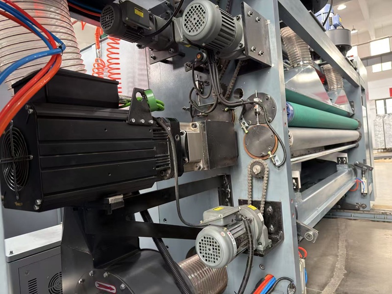 1).It adopts imported ceramic anilox cylinders and Taiwanese doctor blade system, paired with a high-quality closed ink chamber, ensuring uniform ink distribution and stable printing.The doctor blade gap is pneumatically controlled with precise fine-tuning, enabling quick adjustment and blade replacement, greatly improving job change efficiency. A bidirectional diaphragm pump provides automatic ink supply, with the ink volume synchronously matched to the main machine.The chamber structure is designed for easy and rapid cleaning, effectively reducing water-based ink consumption, with simple maintenance and high cleaning efficiency.
