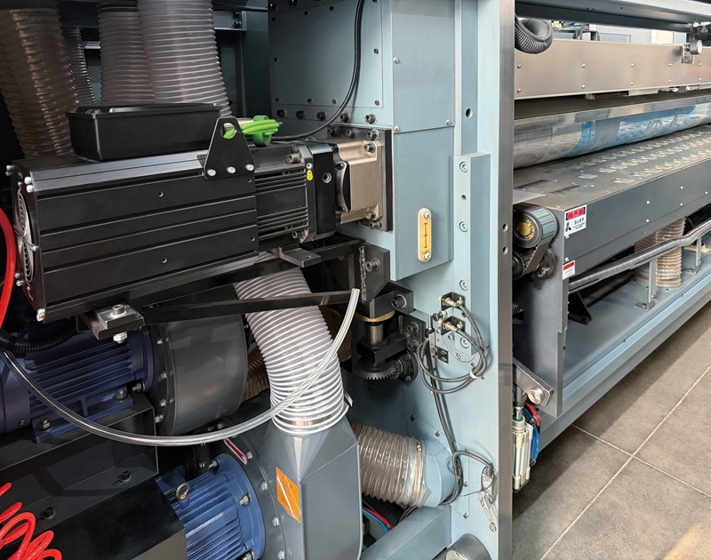 ● The printing unit adopts Swiss ABB servo motors with dual servo independent drive and dual power configuration for printing rollers and suction case. Printing units can be idled separately, the corresponding printing rollers will stop automatically after bring idle for better energy saving.