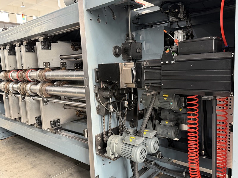 ● The slotting unit is equipped with Swiss ABB servo motors with independent servo drive. The operating speed is precisely controlled by computer to ensure full synchronization with the printing unit. The independent servo drive completely eliminates the impact and vibration during slotting that affect